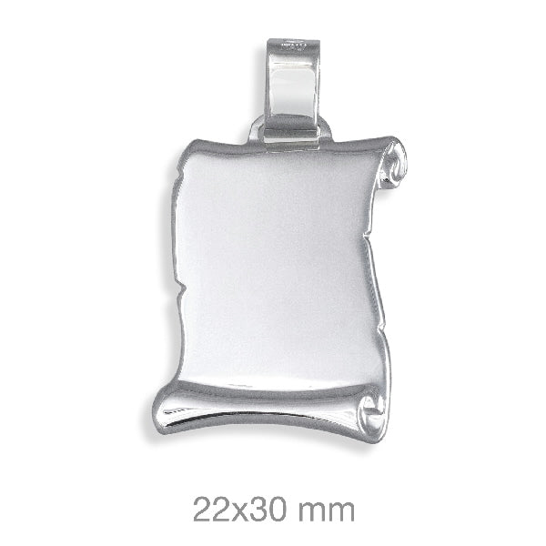 Placas Colgantes de Plata 925 milésimas, diferentes medidas (ver Fotografía Producto). Ideales para grabar Texto gratis por su anverso y reverso. Espesor plancha 0,7 mm