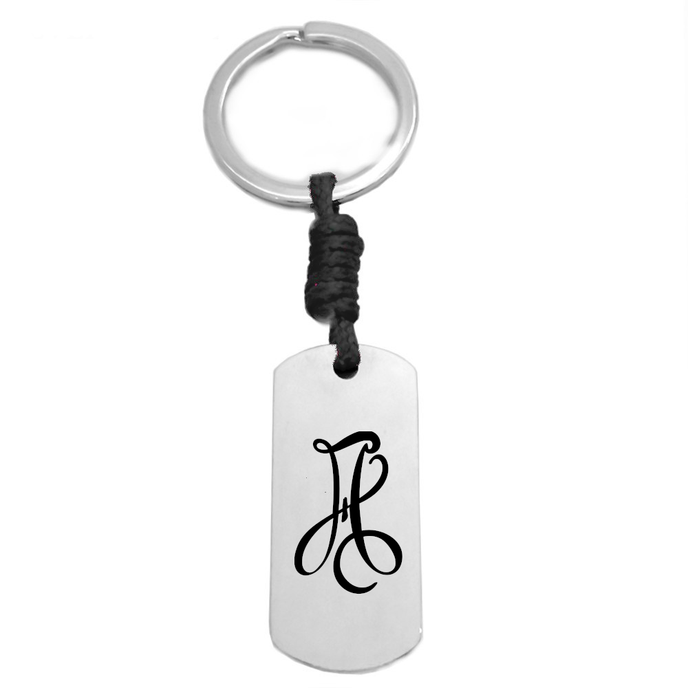 -Llavero placa acero inoxidable con grabado CARA FRONTAL láser diseño Inicial