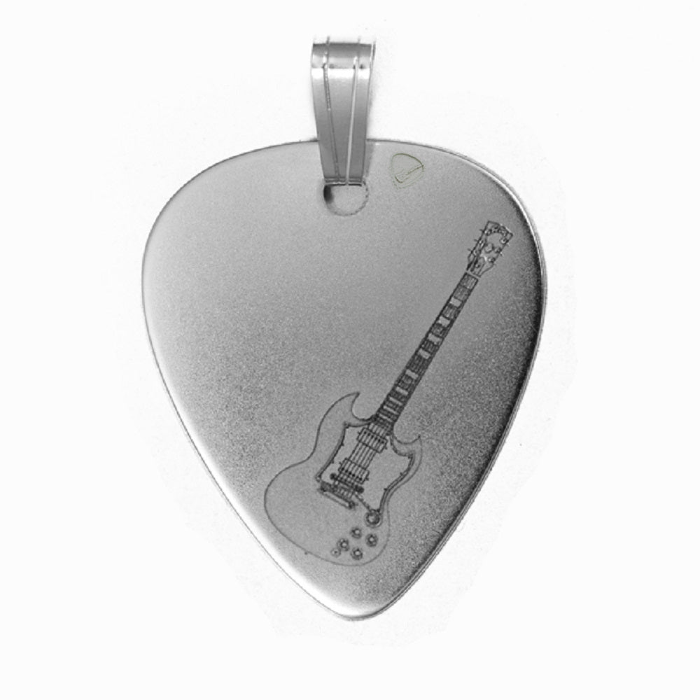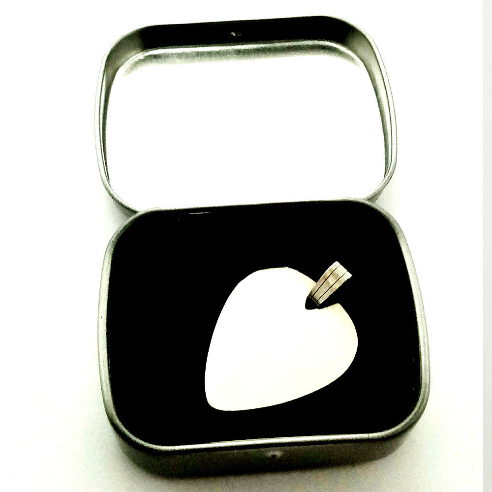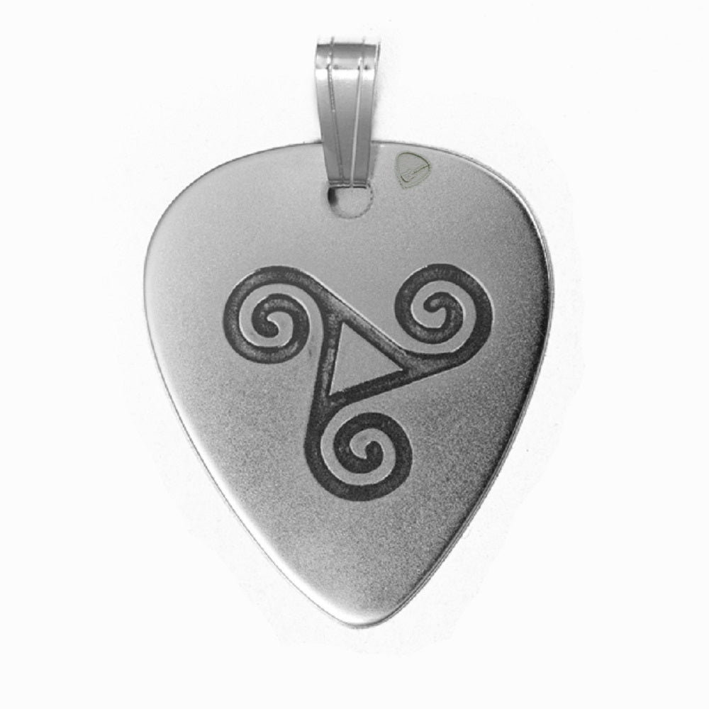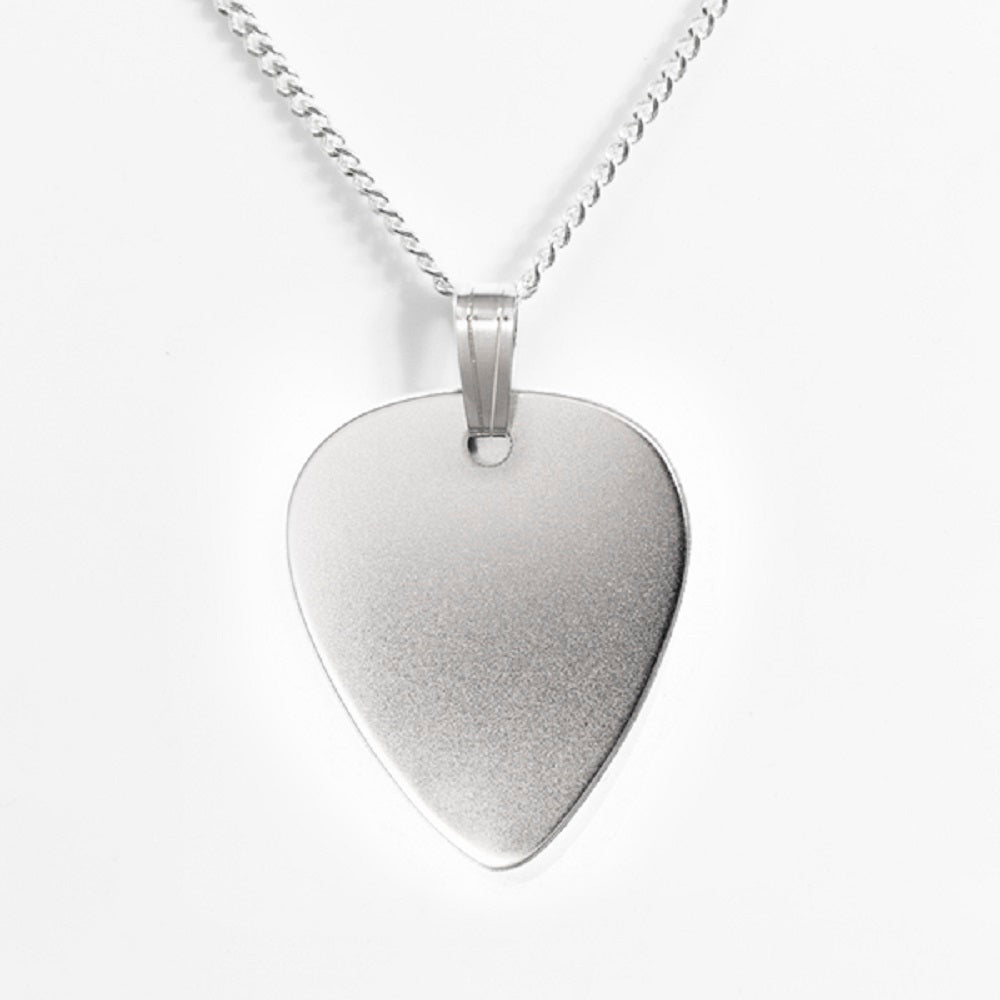 PÚA de PLATA Colgante. Púa fabricada en plata de Ley 925 milésimas, terminación satinada-matizada. Este modelo consta de un agujero con asa soldada de 4 mm diámetro para pasar cadena. Púa de plata que sirve para tocar la guitarra y como complemento colgante , posibilidad de grabar texto por el reverso. Se sirve en estuche de regalo gratis. Cadena no incluida.
